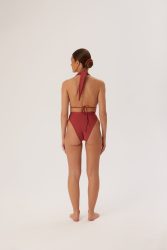 Bikini-Unterteil mit hoher Taille und einem stabilisierenden Taillenband mit eingenähtem Gummizug. Das High-Waisted-Design verlängert die Beine, lässt die Silhouette femininer und schlanker wirken. Der hochtaillierte Po reicht bis hinter den Bauchnabel und betont die Taille.