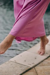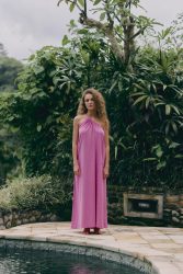 Das rosa Kleid ist eine Wahl für viele Gelegenheiten. Je nachdem, welche Accessoires Sie wählen, können Sie es sowohl leger als auch zu besonderen Anlässen - Hochzeit, Party - tragen. Es passt sehr gut zu einer Jeans- und Lederjacke sowie zu einem Blazer. Das rosafarbene Kleid kann mit Schuhen im sportlichen oder eleganten Stil kombiniert werden. Sommerjacke Nr. 1 ist die perfekte Ergänzung für Ihr Styling. Das Kleid ist in zwei Längen erhältlich - knöchellang und kürzer als knielang.