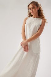 the dress has a loose fit, ideal for the summer, and has sewn-in pockets. it is made in 100% from the highest quality linen. the linen fabric is extremely light, softened and airy, providing a high level of comfort, especially in the summer.
