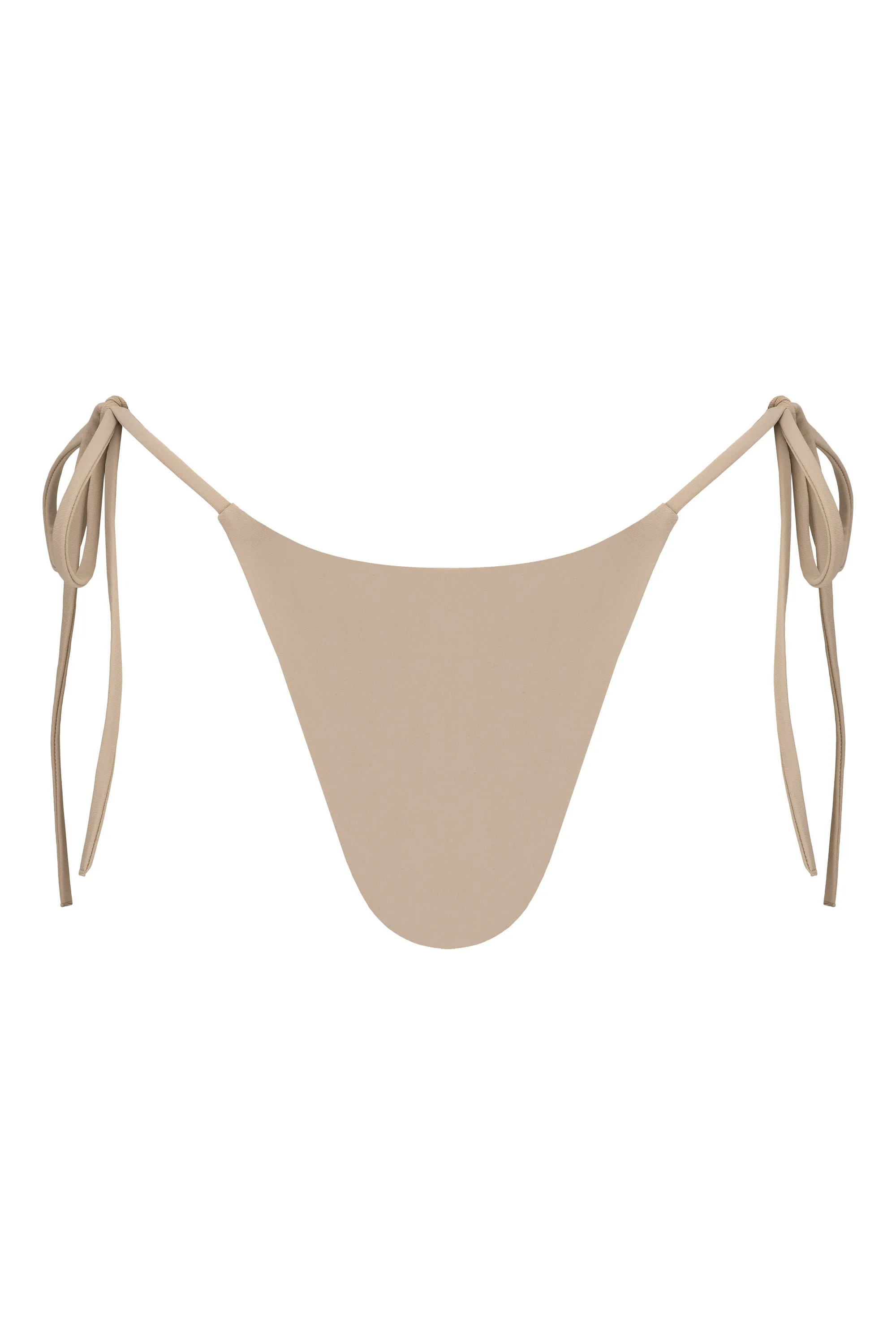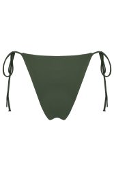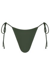 Klasyczny dół bikini z wysokim stanem, na cienkich sznurkach wiązany po bokach. Wyższy stan wydłuża nogi, nadaje sylwetce kobiecości, wysmukla.