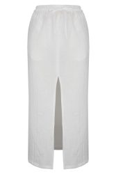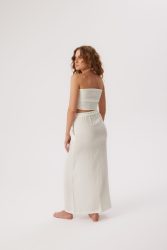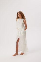 damska spódnica maxi z rozcięciem z przodu idealnie komponuje się z pozostałymi produktami z kolekcji linen. możesz stworzyć modny total linen look z prostą lnianą bluzką lub bluzką wiązaną po bokach, bądź krótkim lnianym topem, który posiada kilka możliwości wiązania. lniana gumka do włosów to idealny dodatek do twojej stylizacji.