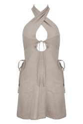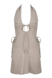 Lniana sukienka mini z dekoltem na krzyż