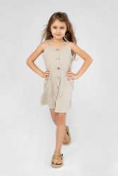 Lniana sukienka na guziki dla dziewczynki