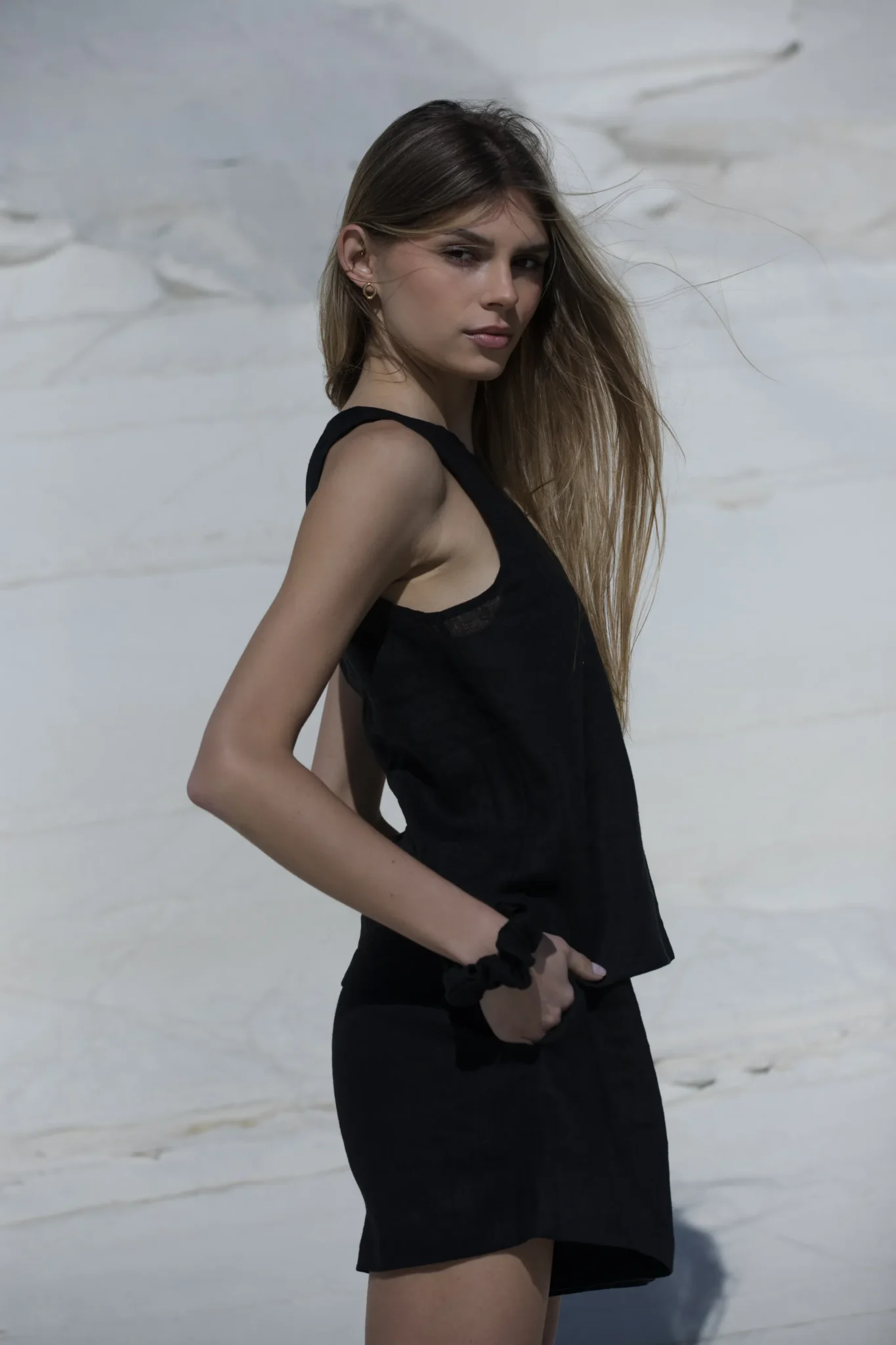 Zestaw je z czarnym topem tied-up lub lnianą bluzką twist by stworzyć wyrazisty, letni total linen look. Dodaj lnianą scrunchie w tym samym kolorze – efekt szykownego minimalizmu gwarantowany.