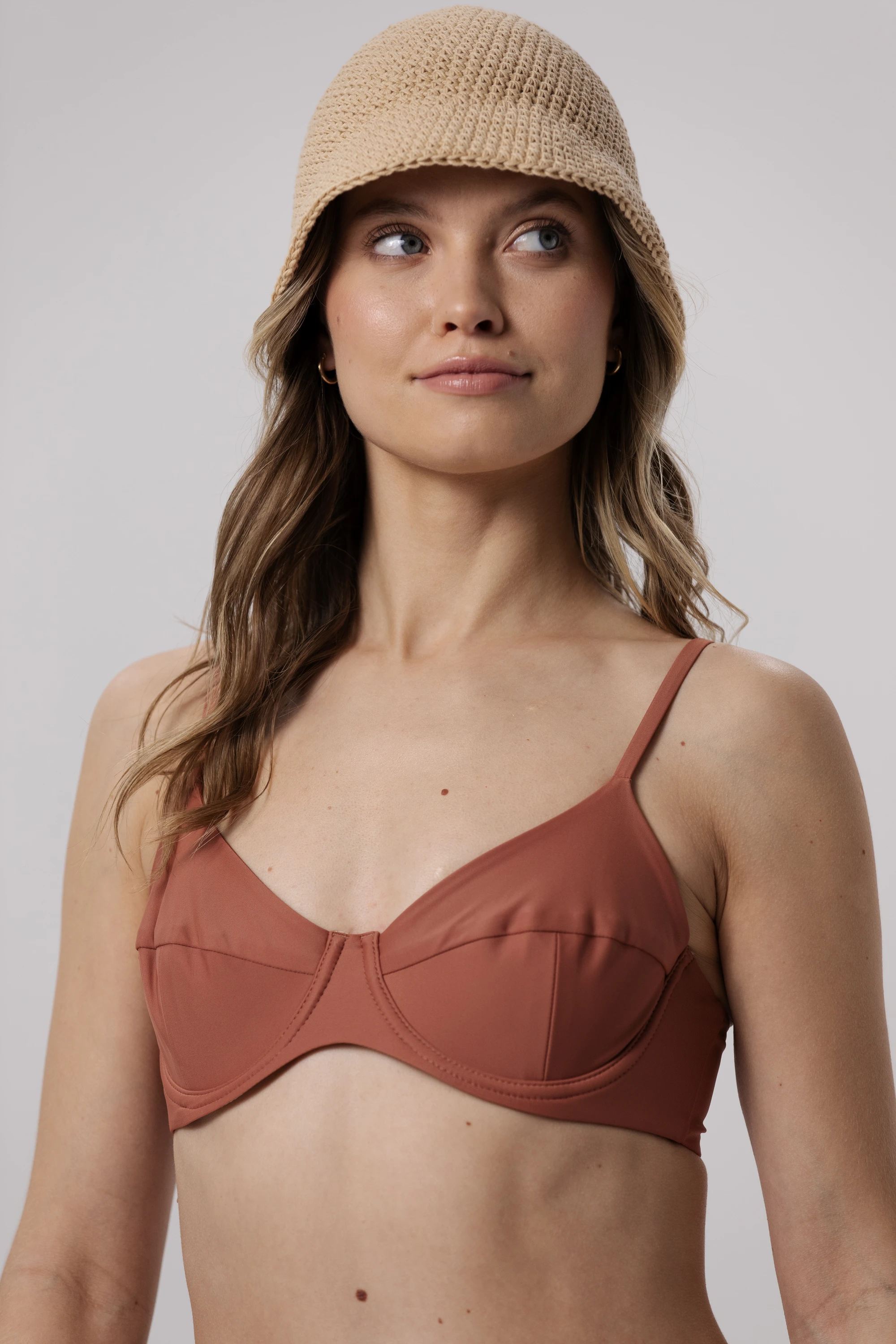 To propozycja dla miłośniczek delikatnych, ciepłych odcieni, które podkreślają naturalne piękno skóry i wpisują się w estetykę subtelnego, nowoczesnego beachwearu.