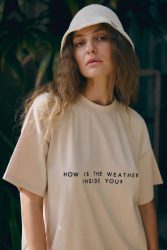 T-shirt z haftem “HOW IS THE WEATHER INSIDE YOU?”