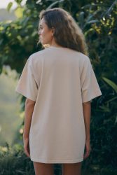 T-shirt w naturalnym odcieniu jasnego beżu to idealna propozycja na lato, może być bazą do stworzenia wielu ciekawych stylizacji. Jest wykonany z organicznej bawełny z elastanem. Bawełna jest cienka, przewiewna, przyjemna w dotyku. Zapewnia wysoki komfort użytkowania, zwłaszcza latem. Produkt jest szyty jednowarstwowo z dzianiny o gramaturze 200g/m2.