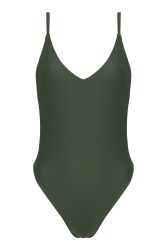 Jednoczęściowy kostium kąpielowy o minimalistycznej ponadczasowej formie z delikatnym dekoltem z przodu i głębokim wycięciem z tyłu. Długość ramiączek regulowana jest za pomocą złotych regulatorów, co umożliwia komfortowe dopasowanie stroju kąpielowego do Twojego ciała. Forma kostiumu wydłuża nogi, nadaje sylwetce kobiecości, wysmukla.