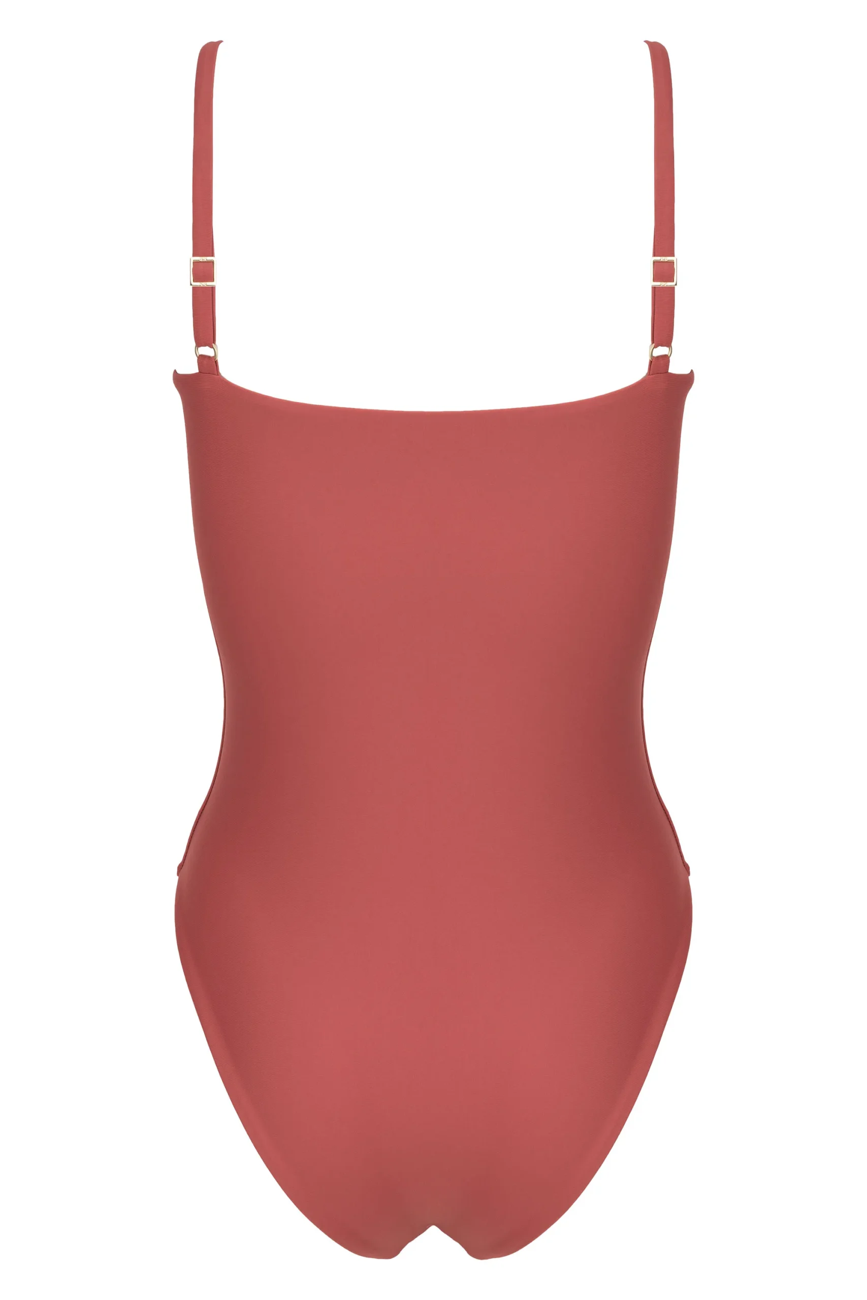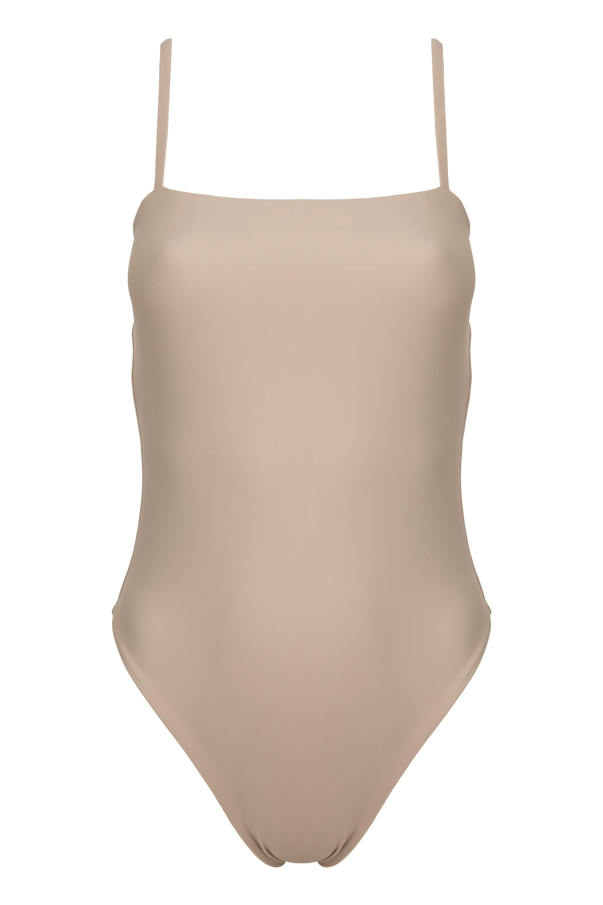Jednoczęściowy kostium kąpielowy o minimalistycznej ponadczasowej formie z prostym dekoltem z przodu i z tyłu. Forma kostiumu zapewnia wysoki komfort użytkowania i sprawia, że kostium jest idealny do aktywnego spędzania czasu na plaży. Ten kostium kąpielowy polecamy do pływania rekreacyjnego i treningowego. Długość ramiączek regulowana jest za pomocą złotych regulatorów, co umożliwia komfortowe dopasowanie stroju kąpielowego do Twojego ciała. Forma kostiumu wydłuża nogi, nadaje sylwetce kobiecości, wysmukla.