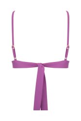 Trójkątny top ze stabilizującym paskiem pod biustem z wszytą gumką. Długość ramiączek regulowana jest za pomocą złotych regulatorów, co umożliwia komfortowe dopasowanie biustonosza do Twojego ciała. Obwód pod biustem jest regulowany przez wiązanie.