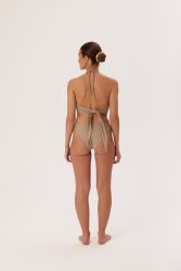 Trójkątny top z szerszym wiązaniem. Strój wiązany jest na plecach i na szyi. Trójkątne bikini stanowi ponadczasowy element plażowej garderoby.